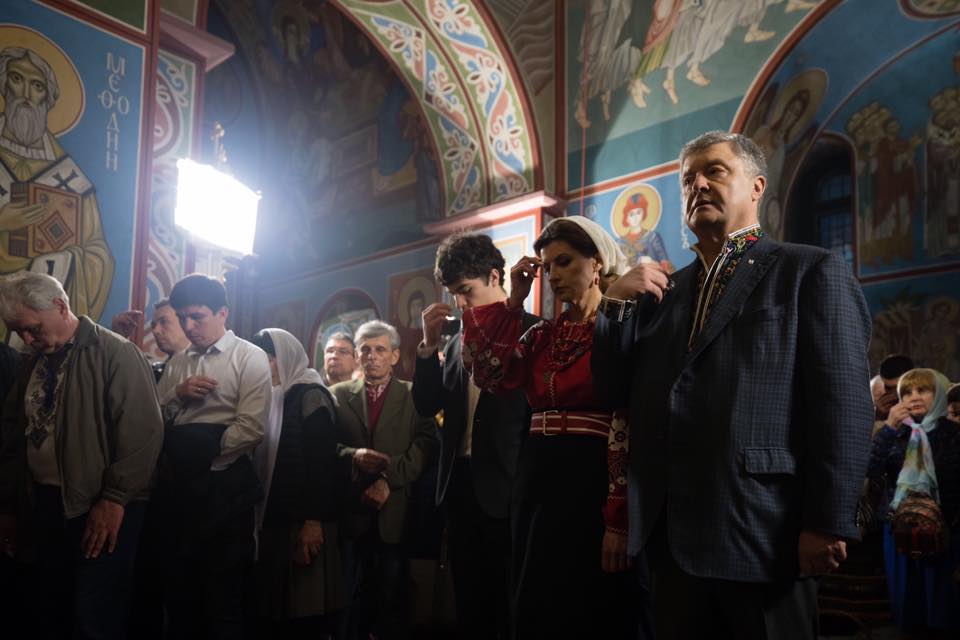 Утром 28 апреля Порошенко вместе с супругой посетил утреннюю службу в соборе Воскресения Христова УГКЦ.
