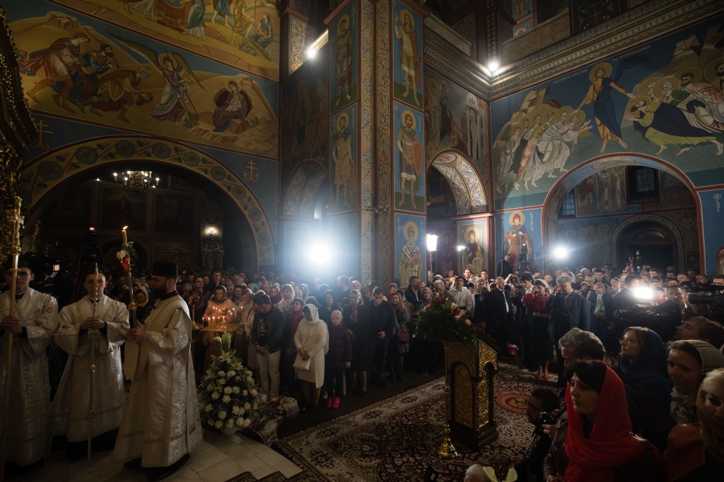 Президентская семья установила свечи, после чего вместе с верующими в сопровождении главы ПЦУ Епифания приняли участие в Крестном ходе. После этого продолжилось праздничное богослужение в Соборе.