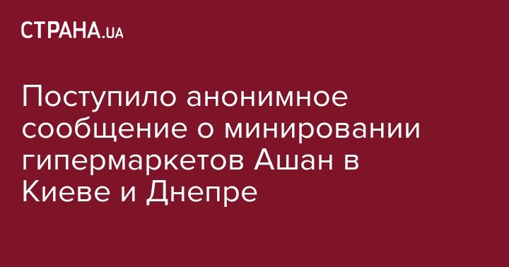 "Call-centre сети "Ашан" получил анонимное сообщение о якобы заминировании одновременно всех их гипермаркетов в городах Киев и Днипро", - говорится в сообщении.