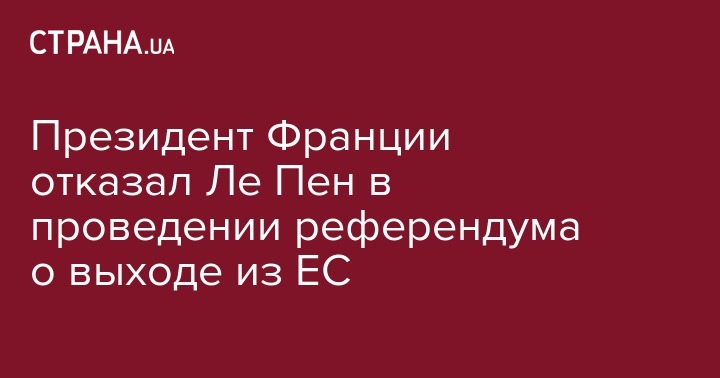 Президент Франции Франсуа Олланд отказал лидеру ​Национального фронта Марин Ле Пен в проведении референдума о выходе страны из Евросоюза вслед за Великобританией, сообщает Le Monde.