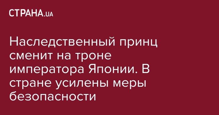 В четверг, 2 мая, в Японии наследный принц Нарухито сменит на троне своего отца - императора Акихито, в связи с этим в стране усилены меры безопасности. Об этом пишет "Интерфакс".