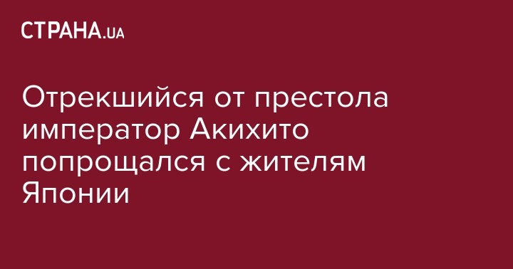 Отрекшийся от престола император Акихито попрощался с жителям Японии