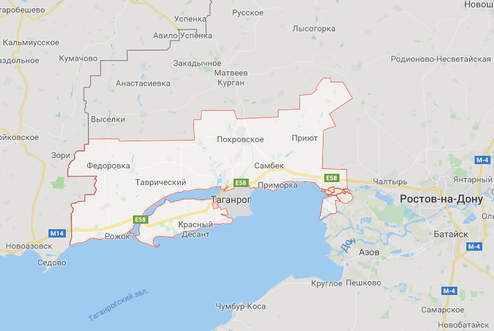Неклиновский район Ростовской области обозначен на карте красным Фото: google.com/maps