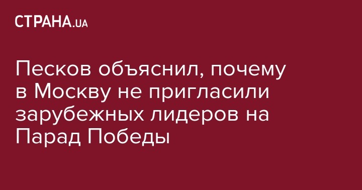 Пресс-секретарь президента России Дмитрий Песков объяснил, почему на праздновании 74-й годовщины Победы не будет зарубежных политических лидеров.