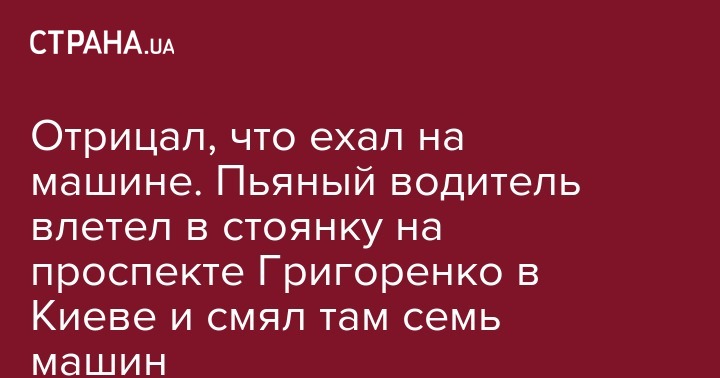 Отрицал, что ехал на машине. Пьяный водитель влетел в стоянку на проспекте Григоренко в Киеве и смял там семь машин