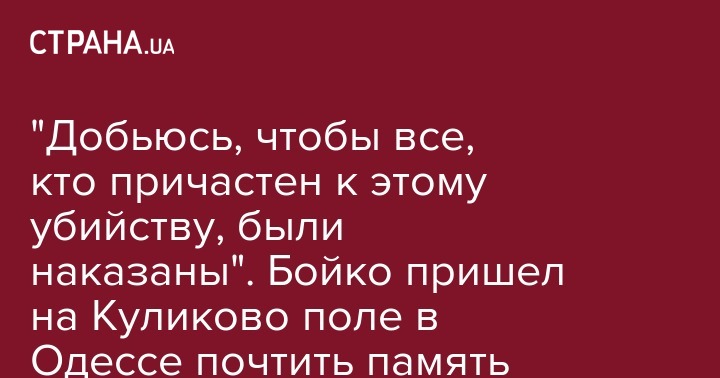 "Добьюсь, чтобы все, кто причастен к этому убийству, были наказаны". Бойко пришел на Куликово поле в Одессе почтить память жертв 2 мая