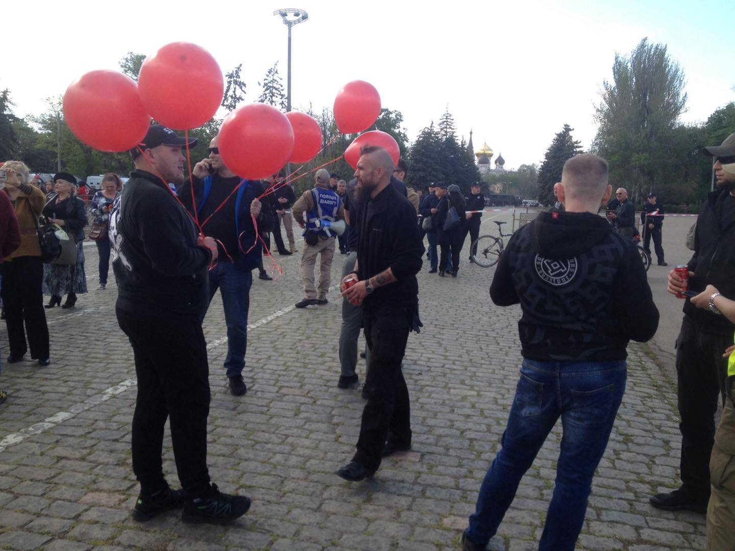 Как сообщает корреспондент "Страны", внутрь оцепления прошло около 40 молодых парней с красными шариками. Стоит отметить, что обычно в день памяти жертв трагедии после 16.00 в воздух запускают сотни черных шаров.