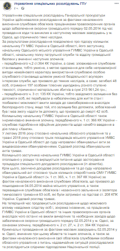 Уголовные производства по фактам массовых беспорядков 2 мая 2014 в Одессе, расследуются следователями Нацполиции.