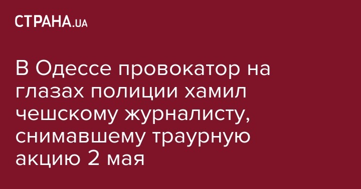В Одессе в четверг, 2 мая 2019, один из противников траурной акции у Дома профсоюзов обвинил чешского журналиста "Raptor TV", который снимал в прямом эфире происходящее в городе - в "ведении путинской пропаганды".