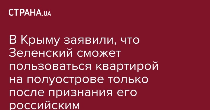 В Крыму заявили, что Зеленский сможет пользоваться квартирой на полуострове только после признания его российским
