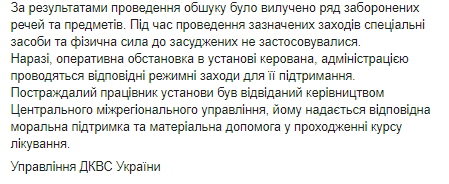 Скриншот, фото: Facebook/ Адміністрація Державної кримінально-виконавчої служби України