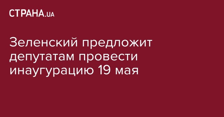 Новоизбранный президент Украины Владимир Зеленский предложит народным депутатам проголосовать за проведение инаугурации 19 мая.
