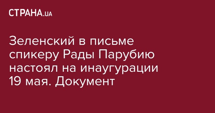 В письме избранный глава государства напомнил Парубию, что 30 апреля ЦИК официально огласил результаты второго тура выборов. А также, что согласно п.2 ст. 165 Закона Украины "О Регламенте Верховной Рады Украины" дата и время церемонии должны назначаться парламентом с согласия новоизбранного президента.