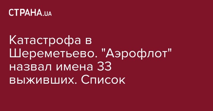 Сейчас уже известно, что выжили 33 человека, пять из них госпитализированы. Информация о еще четверых пассажирах уточняется, передает пресс-служба "Аэрофлота".