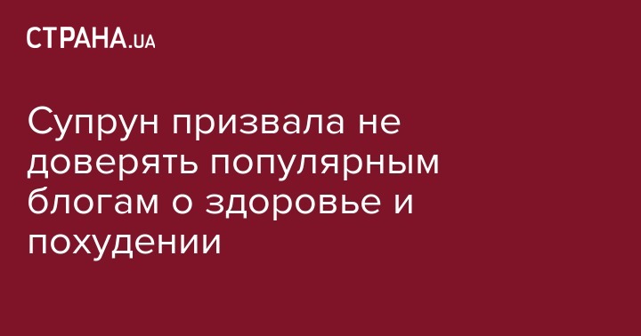 Большинство популярных блогов распространяют недостоверную и непроверенную информацию о здоровом питании и потере веса. Об этом сообщила на своей странице в соцсети и.о. министра здравоохранения Ульяна Супрун, ссылаясь на ученых университета Глазго.