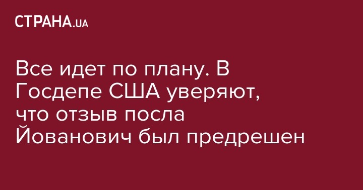 Все идет по плану. В Госдепе США уверяют, что отзыв посла Йованович был предрешен