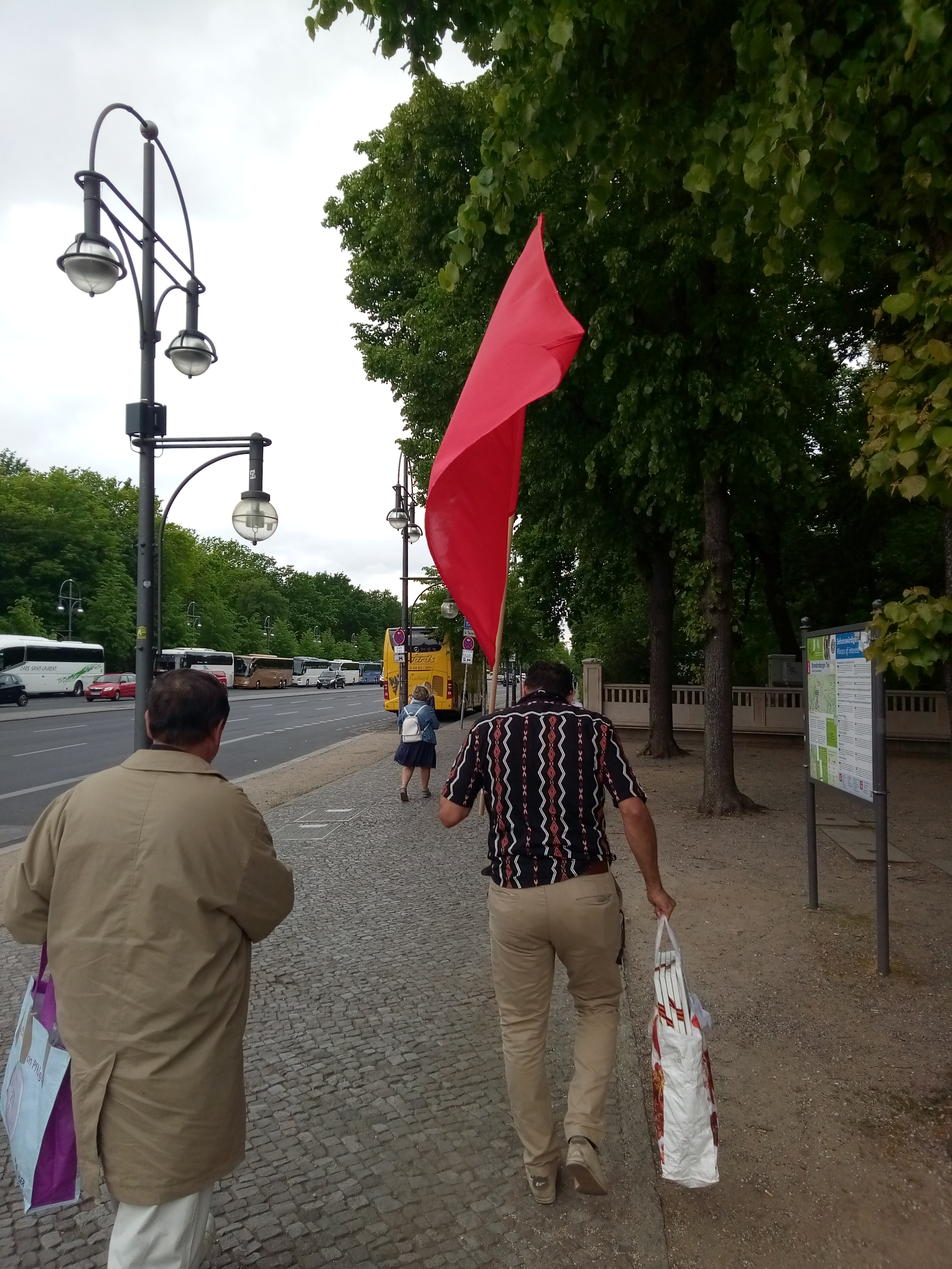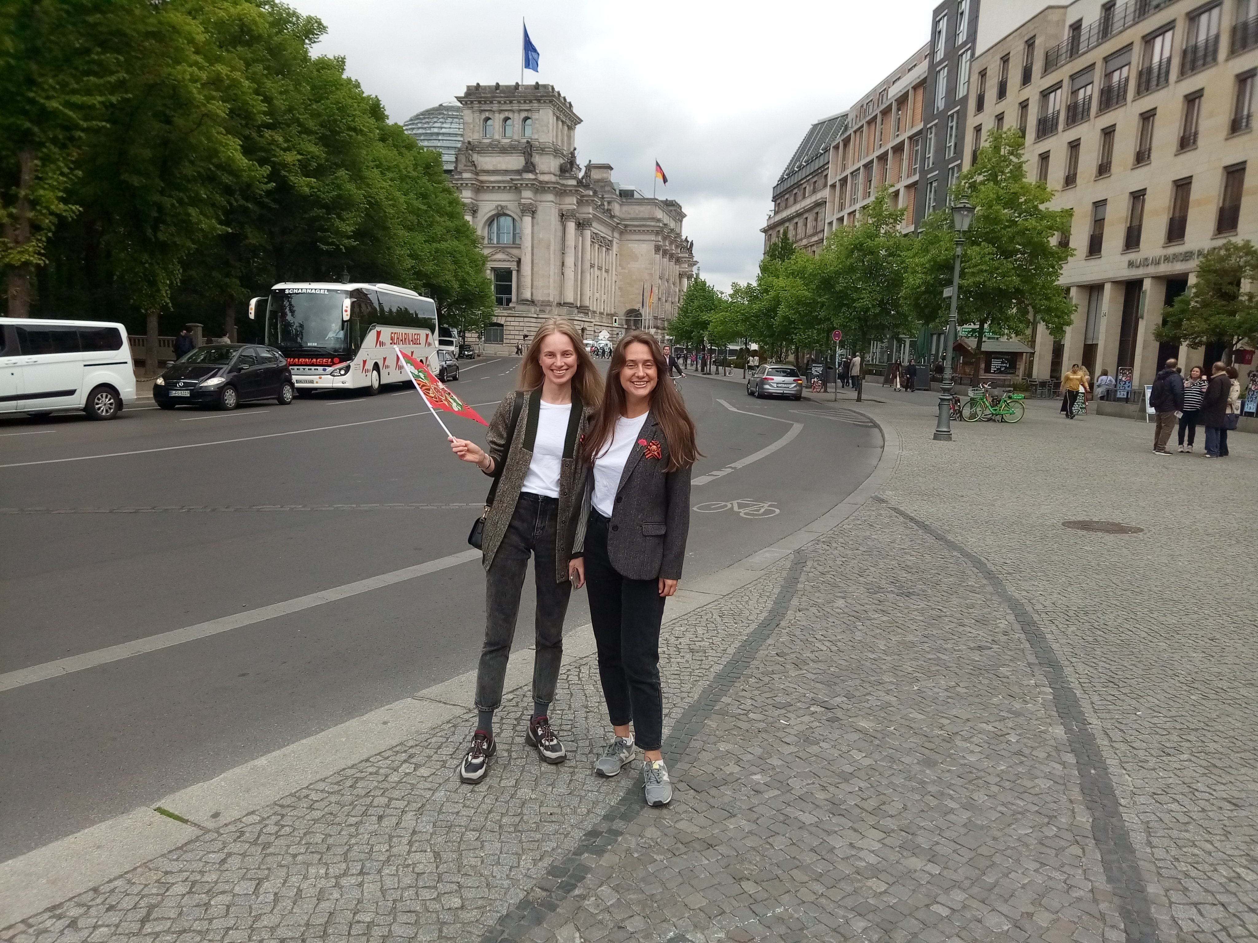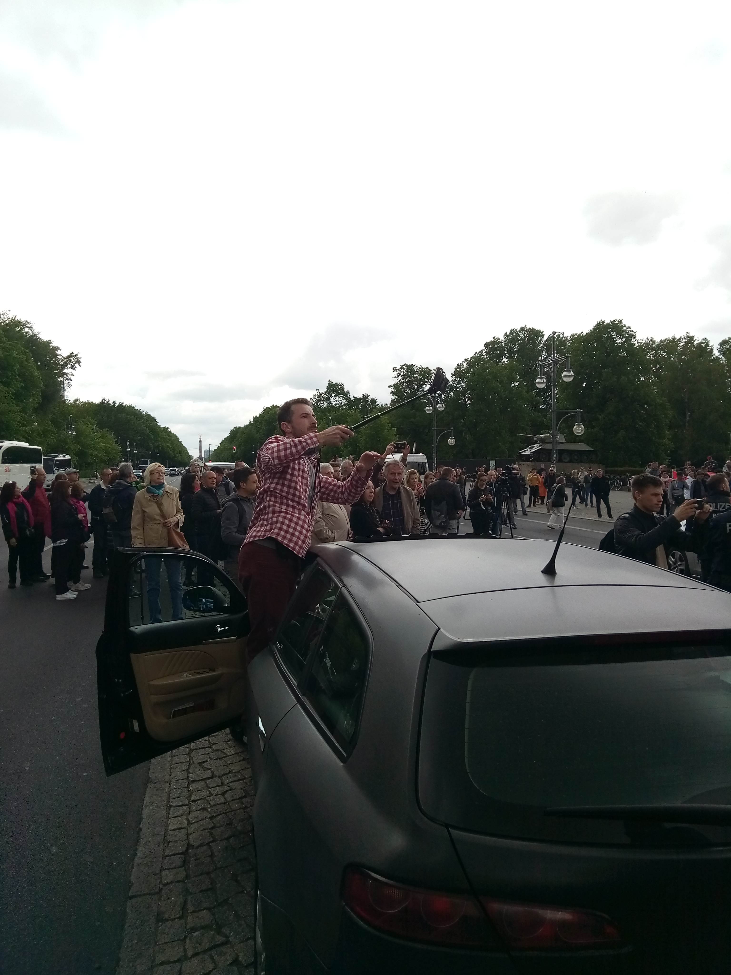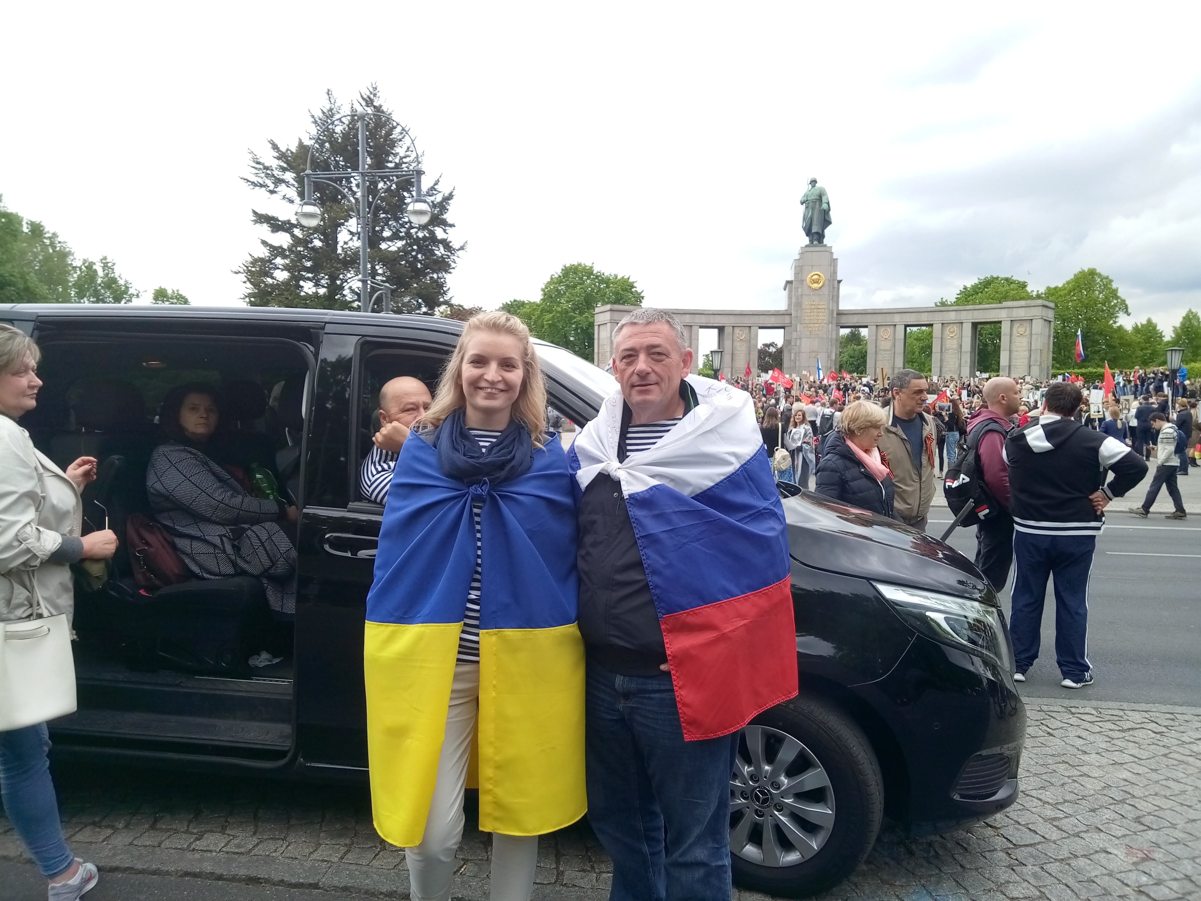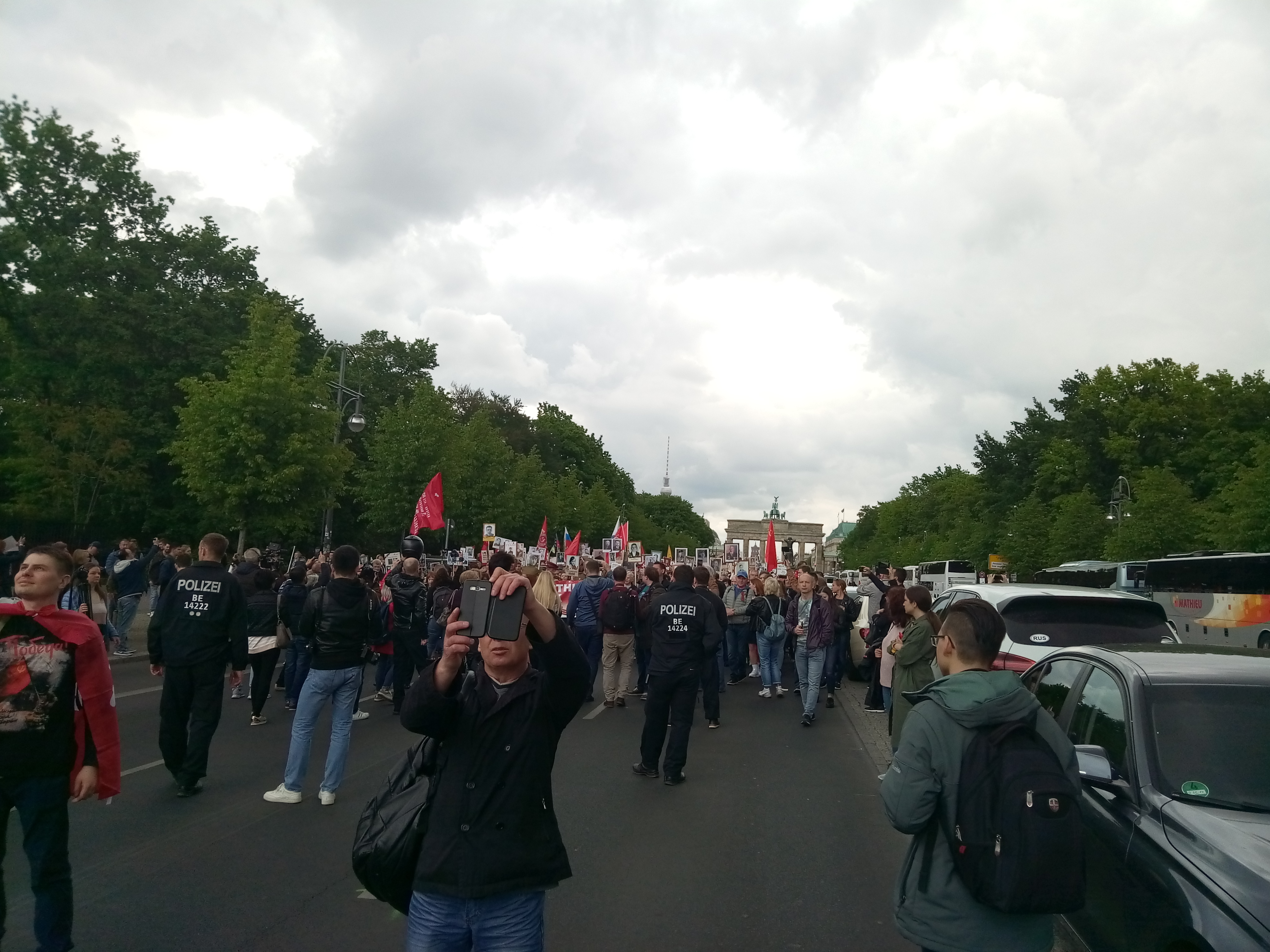 Около 12.00 по Берлину колонна двинулась от Бранденбургских ворот, находящихся недалеко от Бундестага, к мемориалу Тиргартен.