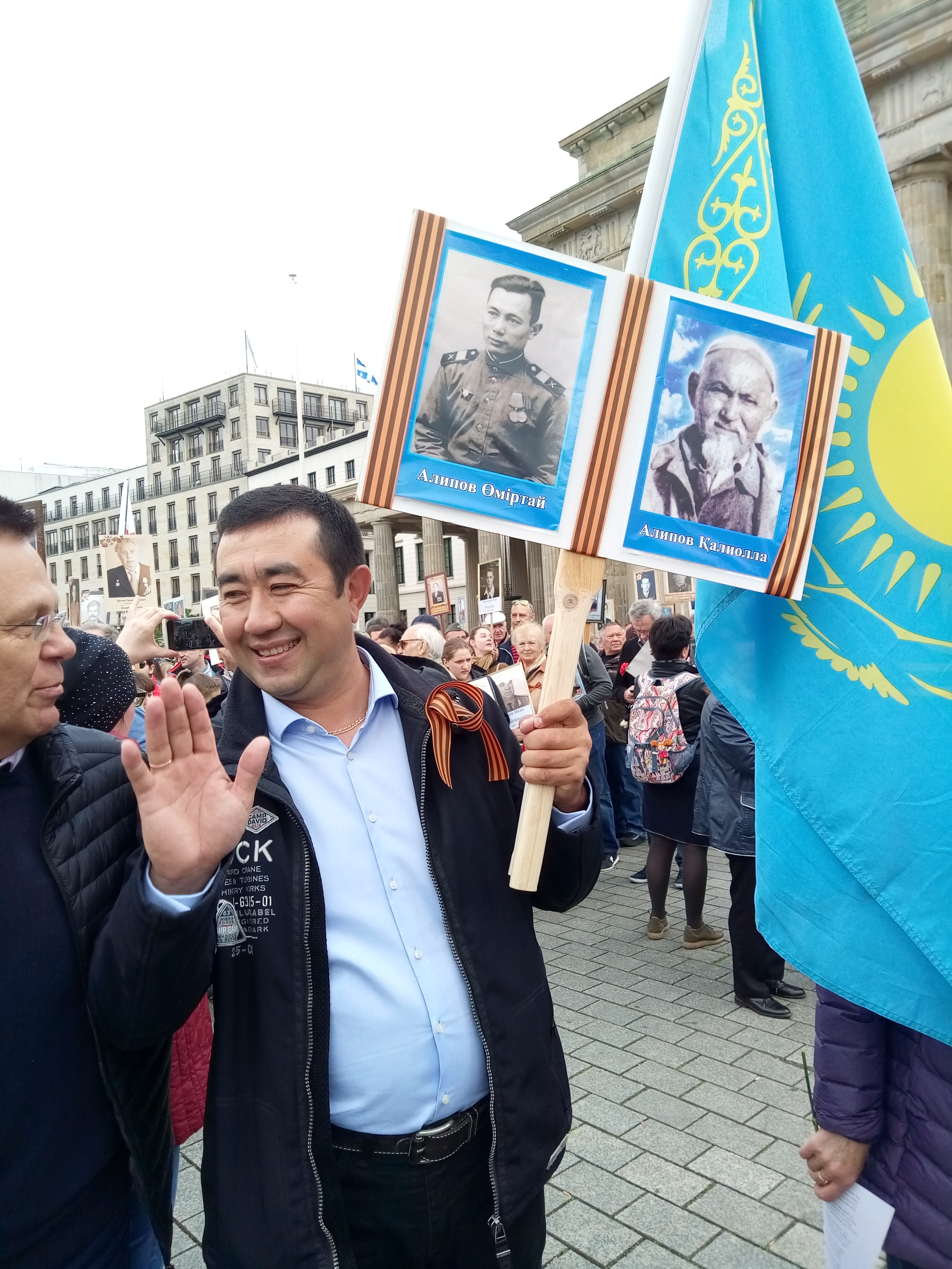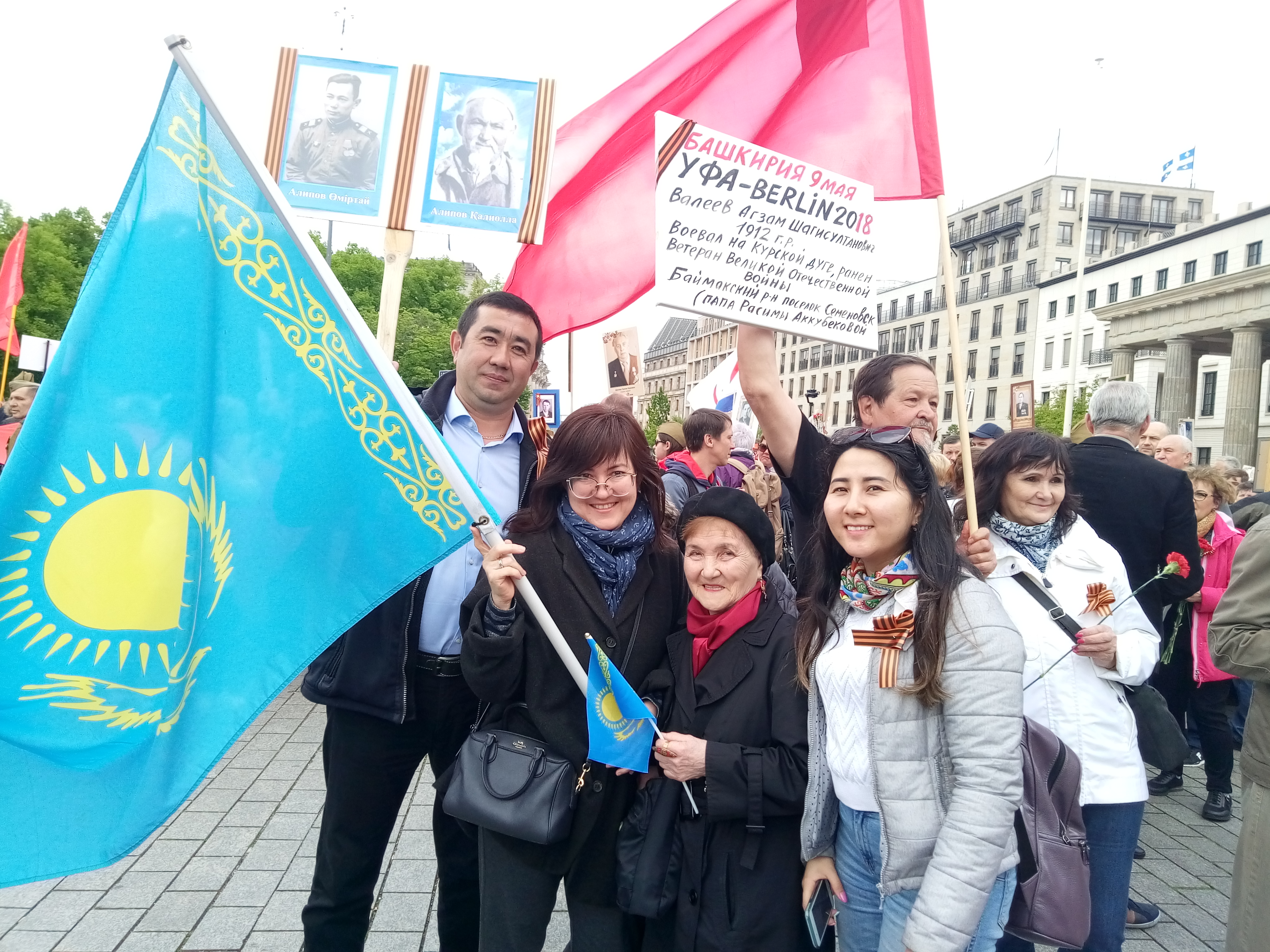 Участники "Бессмертного полка" в Берлине приезжали из самых разных городов и стран. Многие - целыми семьями. Например, как туристы из Казахстана.