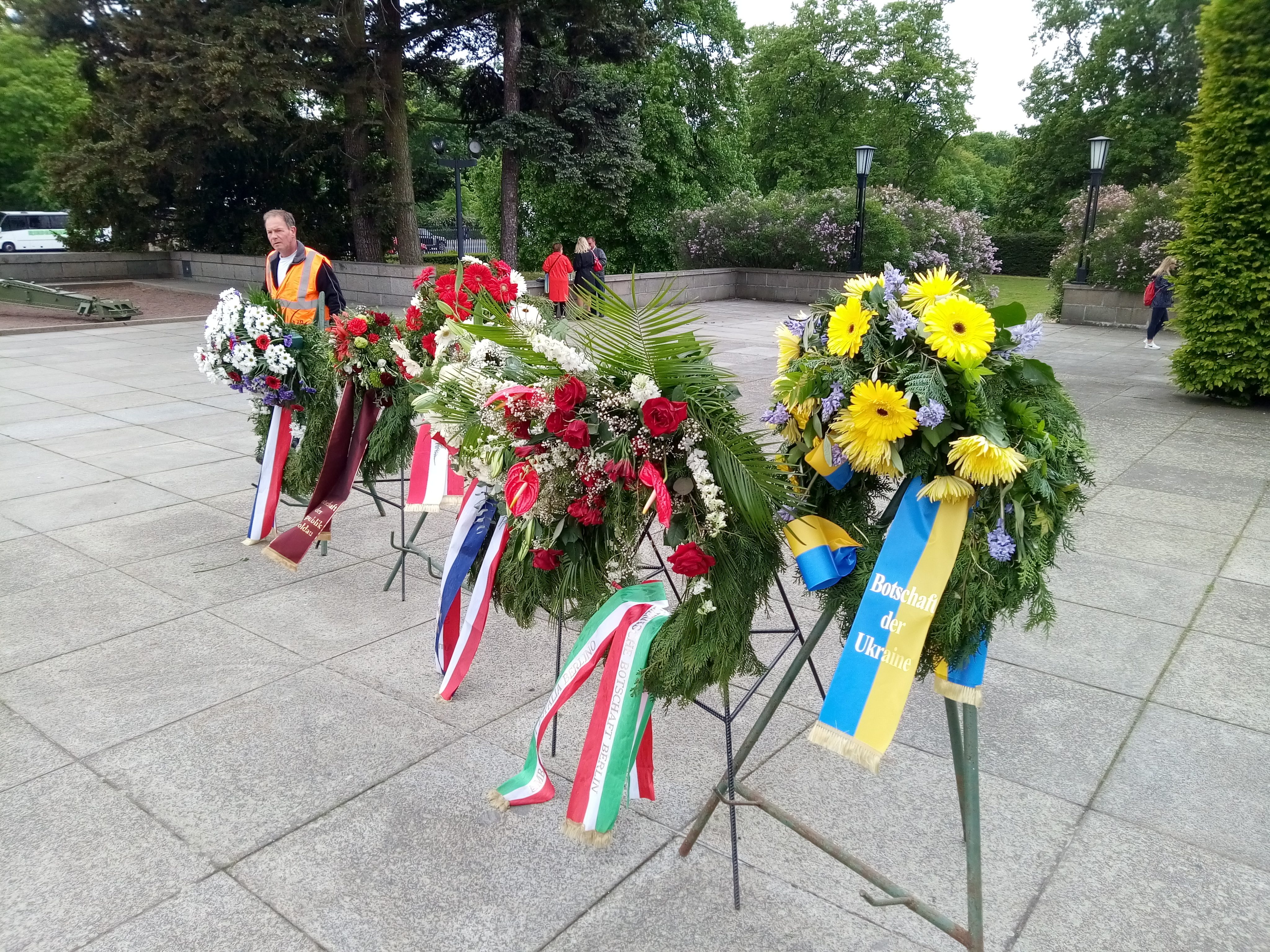 У памятника советским бойцам возлагали цветы не только туристы, но и официальные представители других государств: от посольства Украины, Польши, Италии, Франции, Молдовы, президента федеральной земли Бранденбург.