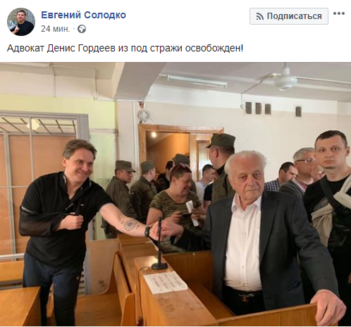 Отметим, что Дениса Гордеева в составе группы лиц правоохранители обвиняют в убийстве сотрудника СБУ Виктора Мандзика на блокпосту в Волновахе Донецкой области 21 марта 2015 года. По версии следствия, в Мандзика стреляли, когда он пытался задержать фуры с контрабандой, которые пытались переправить на неподконтрольную Украине территорию. Именно "Адвокату" (прозвище Гордеева) следствие инкриминирует совершение фатального выстрела в СБУшника. Сам он настаивает на том, что Мандзика не убивал, а на самом деле пытался противодействовать контрабанде, пособничство которой осуществляли силовики. С 2015 года Гордеев находился под стражей.