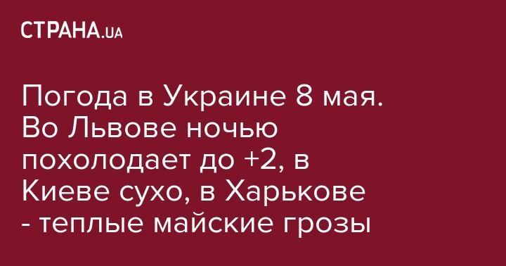 В среду, 8 мая, в большей части Украины вероятные весенние дожди с грозами, но в западных регионах будет сухо, но значительно прохладнее, чем на остальной территории страны. Об этом свидетельствует прогноз, размещенный на сайте "Укргидрометцентра"