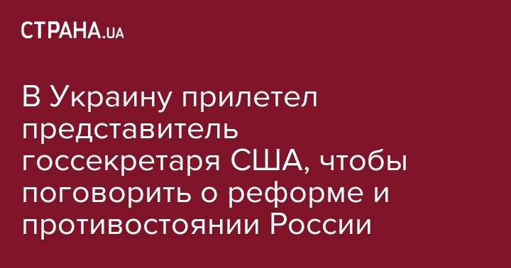 В Украину прилетел представитель госсекретаря США, чтобы поговорить о реформе и противостоянии России