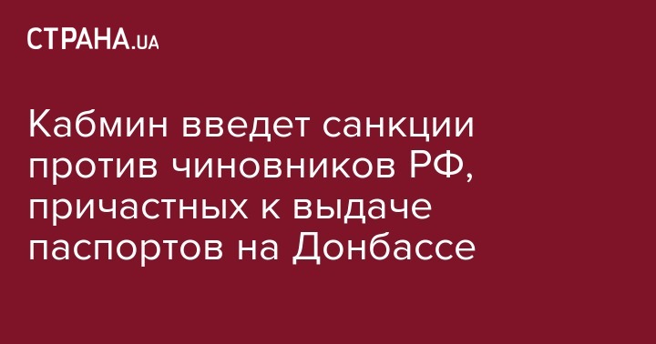 Кабмин введет санкции против чиновников РФ, причастных к выдаче паспортов на Донбассе