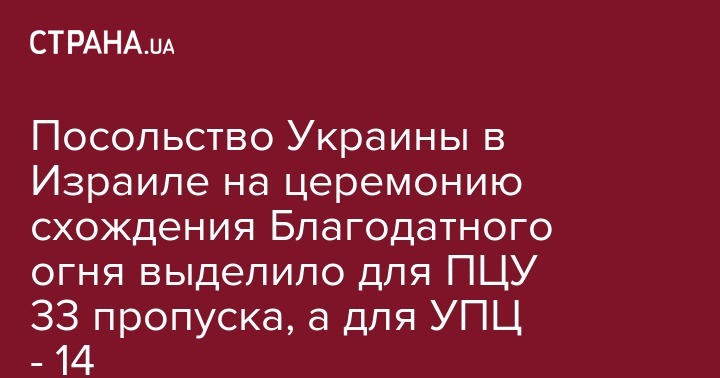 Посольство Украины в Израиле на церемонию схождения Благодатного огня выделило для ПЦУ 33 пропуска, а для УПЦ - 14