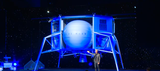 "Настало время вернуться на Луну, на этот раз, чтобы остаться", - заявил Безос на закрытом мероприятии для журналистов и работников космической сферы. Он продемонстрировал на сцене макет в натуральную величину аппарата для высадки на спутник Земли. Посадочный модуль получил название Blue Moon.