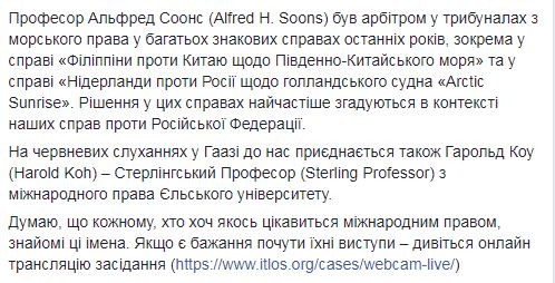 "Россия цепляется буквально к каждому слову и к каждому сделанному заявлению, искажая их содержание. В процессуальных документах вы можете увидеть как Россия упражняется в мастерстве называть белое черным, потом опять белым, отрицая свое согласие с тем, что белое является белым, - отметила Зеркаль. - Поэтому принятие решений относительно использования процедур, создания документов и, главное, подготовка к слушаниям - все это занимает в разы больше времени, чем длится заседание".