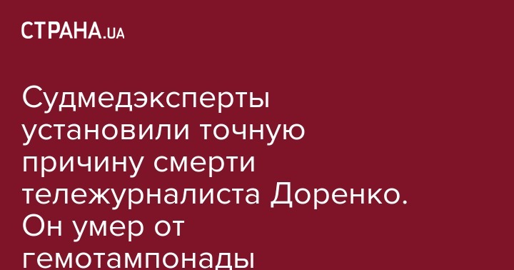Судмедэксперты установили точную причину смерти тележурналиста Доренко. Он умер от гемотампонады