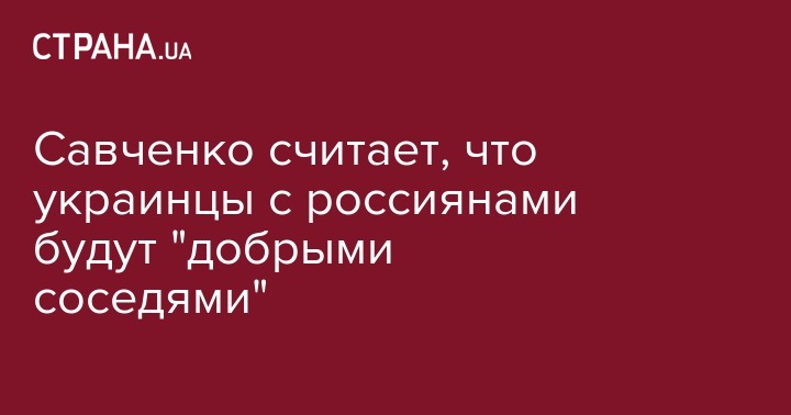 Народный депутат и украинская летчица, освобожденная из российского СИЗО Надежда Савченко считает, что украинцы и россияне будут добрыми соседями. Об этом она рассказала в интервью "Собеседнику".