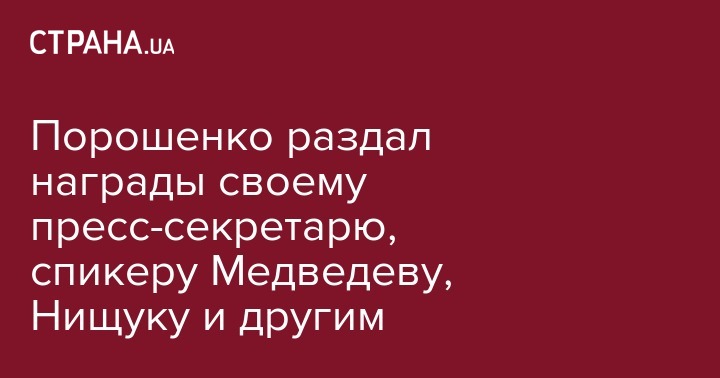 Советники президента Руслан Демченко, Олег Медведев (спикер штаба Порошенко на выборах - прим. ред.), пресс-секретарь президента Украины Святослав Цеголко, глава Киевской областной государственной администрации Александр Терещук награждены Орденом "За заслуги" ІІІ степени.