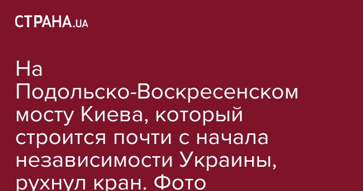 На Подольско-Воскресенском мосту Киева, который строится почти с начала независимости Украины, рухнул кран. Фото