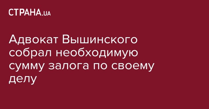 Адвокат Андрей Доманский, который, в частности занимается защитой руководителя "РИА Новости-Украина" Кирилла Вышинского, сумел собрать необходимую сумму в 192 тыс. грн для внесения залога в рамках избранной ему Печерским районным судом Киева меры пресечения. Об этом он написал на своей странице в Facebook.