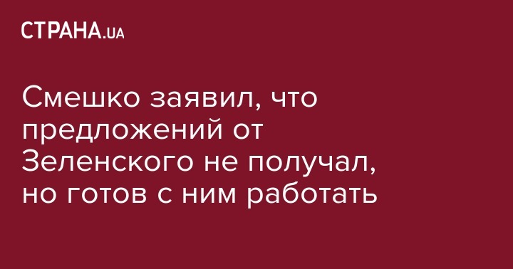 Смешко заявил, что предложений от Зеленского не получал, но готов с ним работать