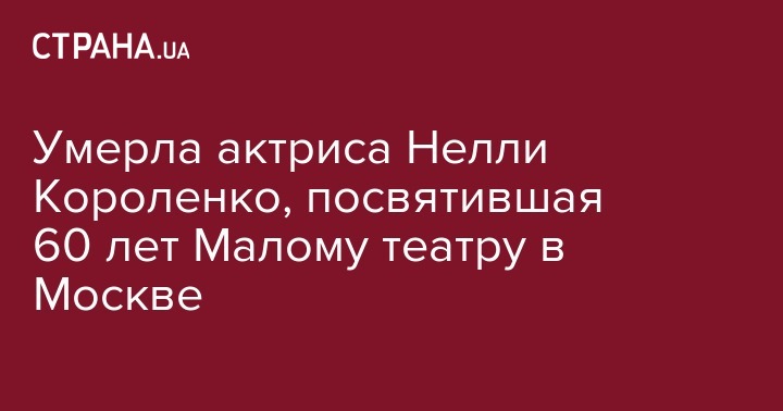 9 мая скончалась народная артистка России Нелли Короленко. На момент смерти ей было 80 лет. Об этом сообщает пресс-служба Малого театра в Москве