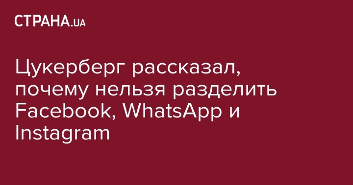 Цукерберг рассказал, почему нельзя разделить Facebook, WhatsApp и Instagram