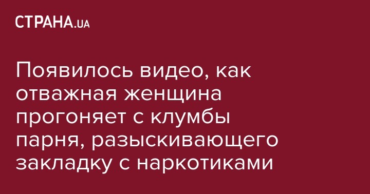 Появилось видео, как отважная женщина прогоняет с клумбы парня, разыскивающего закладку с наркотиками