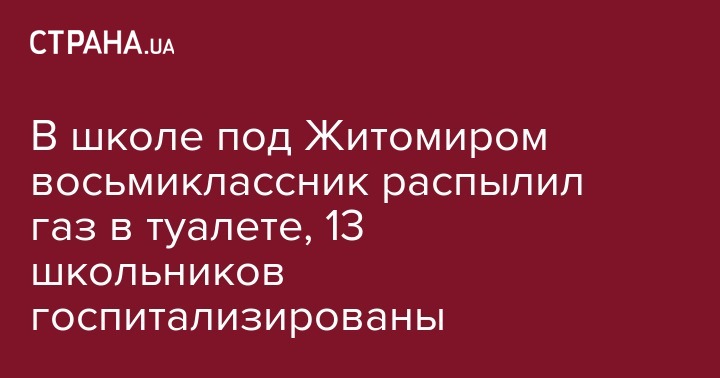 В понедельник, 13 мая, в одной из школ Житомирской области восьмиклассник распылил газ из баллончика. Об этом сообщает Отдел коммуникации ГУ НП в Житомирской области