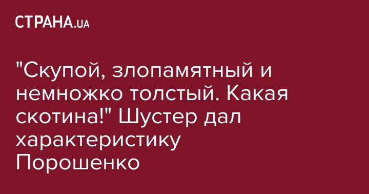 Известный телеведущий Савик Шустер, впавший в немилость нынешней киевской власти, заявил, что три главных качества действующего президента Украины Петра Порошенко - то, что он "скупой, злопамятный и немножко толстый". Об этом он заявил в блиц-интервью для YouTube-канала главного редактора интернет-издания "Гордон" Алеси Бацман.