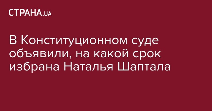 "На специальном пленарном заседании Главой Конституционного суда Украины избрана Наталья Шаптала. В соответствии со статьей 33 Закона Украины "О Конституционном Суде Украины" Глава Суда избирается на специальном пленарном заседании только на один трехлетний срок", – сказано в сообщении.