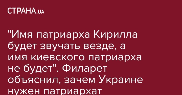 "Имя патриарха Кирилла будет звучать везде, а имя киевского патриарха не будет". Филарет объяснил, зачем Украине нужен патриархат