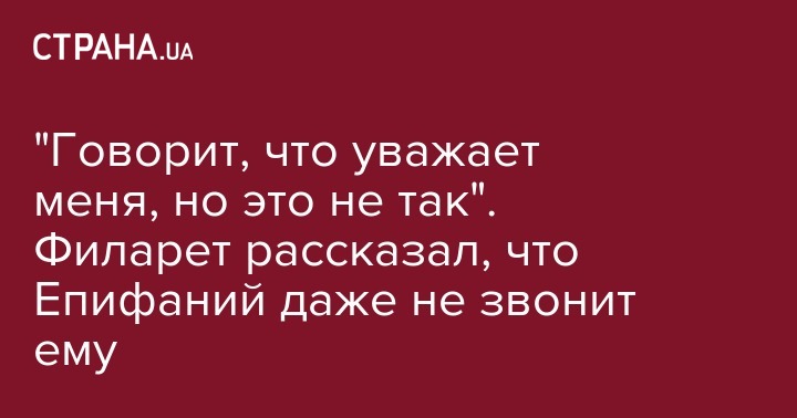 "Говорит, что уважает меня, но это не так". Филарет рассказал, что Епифаний даже не звонит ему