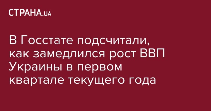 Рост реального внутреннего валового продукта (ВВП) Украины в первом квартале 2019 года по отношению к аналогичному периоду прошлого года замедлился до 2,2% по сравнению с 3,5% в четвертом квартале 2018 года и 3,3% - в целом за 2018 год, такую предварительную оценку опубликовала Государственная служба статистики в среду.