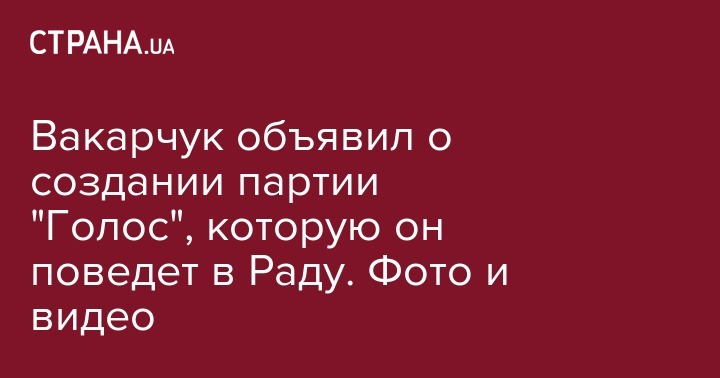 Известный украинский исполнитель Святослав Вакарчук объявил сегодня в Киеве о создании политической партии "Голос", которую он поведет в парламент. Об этом сообщает корреспондент "Страны".