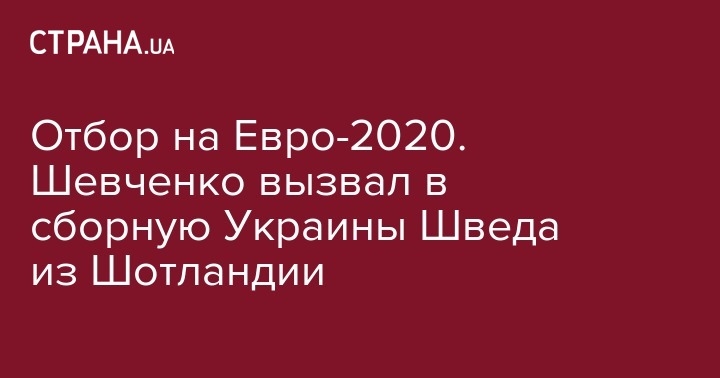 Отбор на Евро-2020. Шевченко вызвал в сборную Украины Шведа из Шотландии