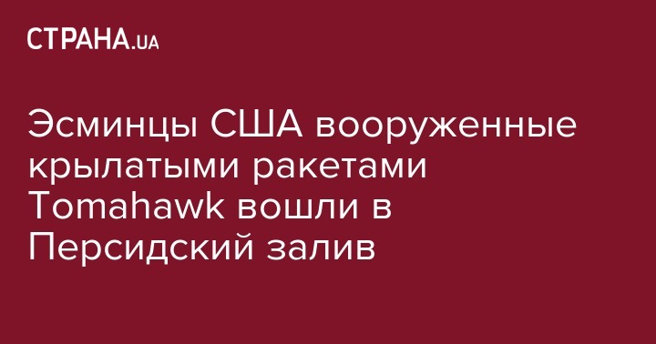 Продолжается эскалация ирано-американского кризиса. На фоне взаимных обвинений и угроз угроз два американских эсминца, оснащенных крылатыми ракетами Tomahawk ("Томагавк"), пройдя Ормузский пролив, вошли в акваторию Персидского залива.