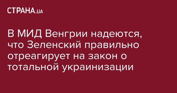 В МИД Венгрии надеются, что Зеленский правильно отреагирует на закон о тотальной украинизации