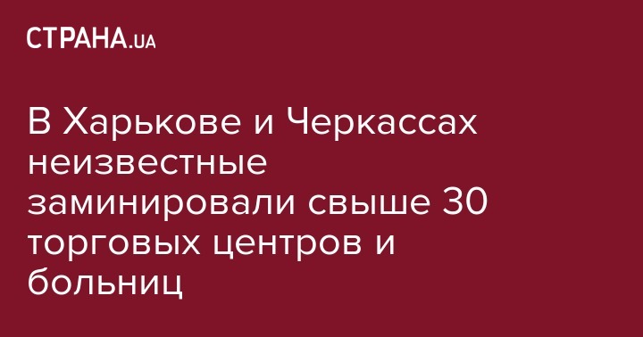 В пятницу, 17 мая, В Харькове и Черкассах неизвестные сообщили о минировании десятков объектов и торговых центров. Так, харьковские правоохранители проверяют информацию о заминировании 19 торговых центров, а в Черкассах взрывчатку ищут в 13 ТРЦ. Об этом сообщает сайте Нацполиции Харьковской области.